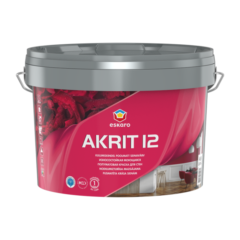 Akrit 12 Kulumiskindel pestav poolmatt seinavärv 4,75L